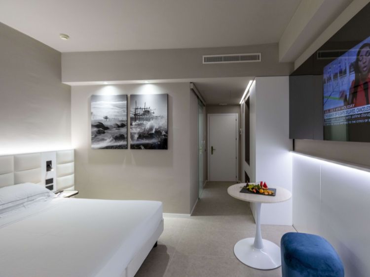 Camere finemente arredate che giocano sui toni caldi del tabacco e della sabbia. Il sommier King Size assicura un riposo ottimale mentre il luminoso bagno con Doccia Walk-in completa l’esperienza di queste camere di nuova generazione. Tutte con balcone provvisto di sedie e tavolino che affaccia verso la collina.